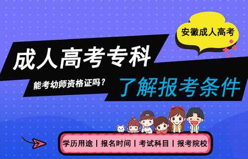 2020年安徽省上半年教师资格证考试报名正在火热进行中,很多考生想知道成人高考专科学历能否报名幼师资格证考试?根据《教师法》规定,成人高考专科学历是可以报考幼师资格证以及小学资格证考试的,下面快师教育就将具体报考条件和成人高考专科的报考流程发布如下,考生可作为参考。
