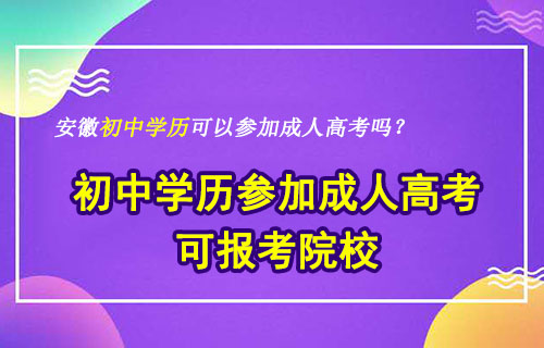 现在就业形势严峻,对于一些低学历人群来说,在找工作的时候自然会受到很多的限制,有一些对职业发展有追求,有目标的人自然会选择提升学历让自己发展的更好。初中学历人群可以参加成人高考吗?安徽成人高考报名条件宽松,初中学历也可以参加考试,只要成绩达到录取分数线就可以。下面快师教育就为考生详细介绍一些初中学历参加成人高考可以报考的一些院校。
