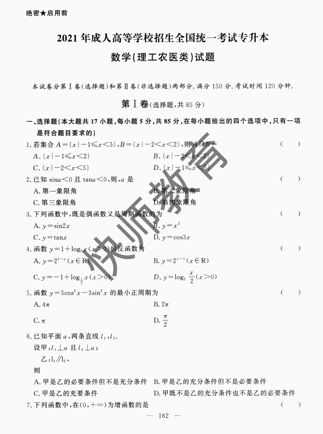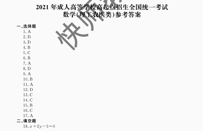 成人高考考试结束之后,网上也陆陆续续的公布了一些科目的真题及答案。快师教育安徽成考网根据考生提供的内容,将2021年成人高考高起专数学考试真题及答案整理并发布如下。由于题目都是网友根据回忆整理而来的,故仅供广大考生参考,如有疑问或想要提供更多科目真题的,可直接在线咨询。