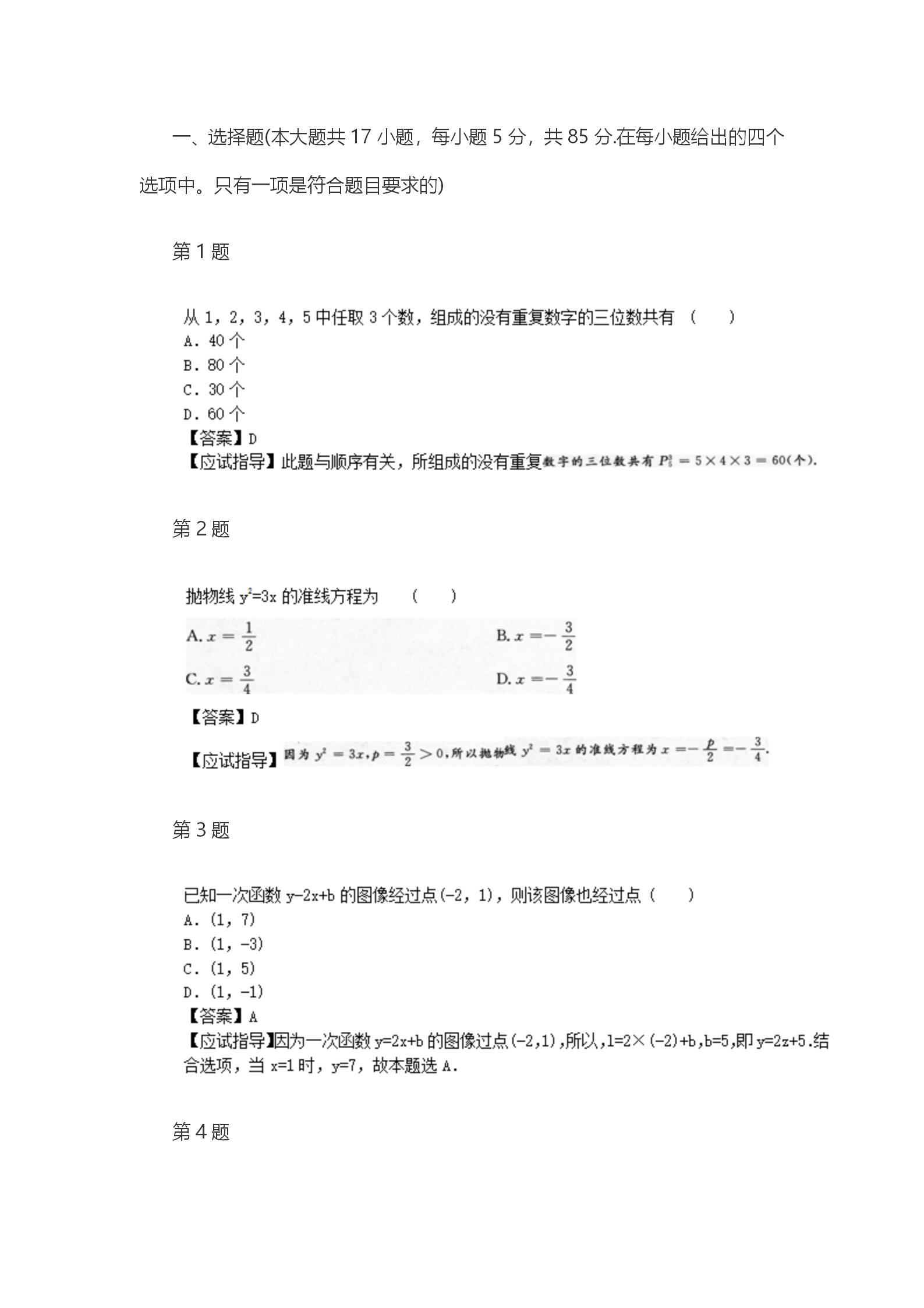 一、选择题(本大题共17小题,每小题5分,共85分.在每小题给出的四个选项中。只有一项是符合题目要求的)
