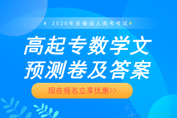 成人高考是全国统一考试,其中高起专考试科目为语文、数学和英语。以下是2020安徽成人高考高起点数学(文)考前预热试题二,考试时间为120分钟,考试题型为:选择题、填空题和解答题,共计25道小题,满分150分。安徽成人高考高起专一般只需考到120分左右即可通过,欢迎考生报考。