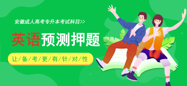 为了让广大考生能够轻松备考,快师教育现将2020年安徽成人高考专升本《英语》预测押题卷三发布如下,考生可在线学习。快师教育提供安徽成人高考咨询、报名、课程、助学、学位英语培训等服务,全力助考,考生如有需要可直接在线咨询老师了解报考流程。