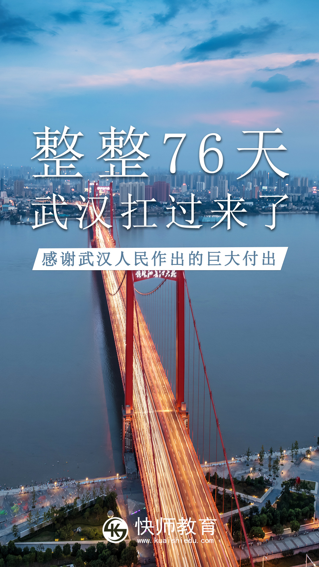 2020年4月8日零时,武汉正式解除了对离汉离鄂通道的管控措施,有序的恢复对外交通。距离武汉封城的76个日日夜夜,1824个小时,终于,这座英雄的城市在这一天荣誉归来!