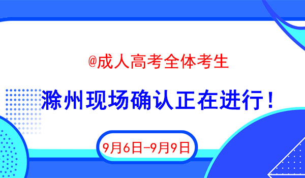 2019滁州成人高考报名现场采像时间为9月6日-9月9日。确认地点包括全椒、来安、定远、凤阳、琅琊区、南谯区。