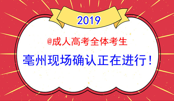 2019亳州成人高考报名现场采像时间为9月6日-9月9日。确认地点包括涡阳县、蒙城县、利辛县和谯城区。