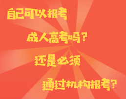 成人高考是可以自己报考的,并不一定要通过机构才能报名!成人高考每年8月底9月初进行网上报名,考生可以自行填写报考信息,确认缴费后,完成报名流程即可。